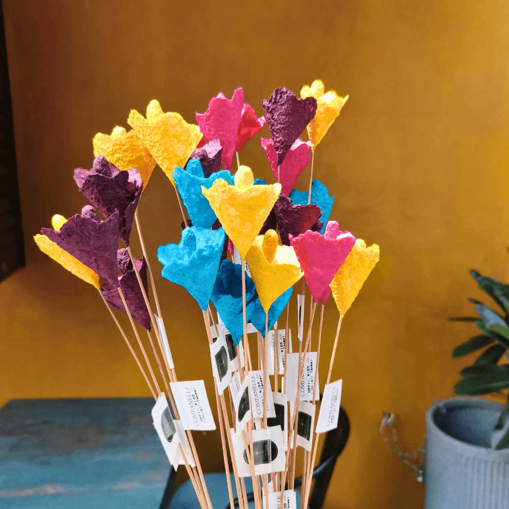 These paper flowers are handmade from fine quality cotton-mache for home and office decoration and are lovely gifts. They are incredibly fashionable and appear light and delicate. Brighten up any space and bring the beauty of springtime blooms to your indoor décor.