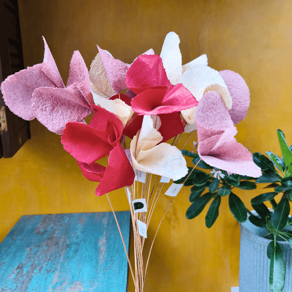These paper flowers are handmade from fine quality cotton-mache for home and office decoration and are lovely gifts. They are incredibly fashionable and appear light and delicate. Brighten up any space and bring the beauty of springtime blooms to your indoor décor.
